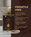 • Cold-Pressed Integrity: Retains the sesame's natural compounds, flavour, and distinct aroma.